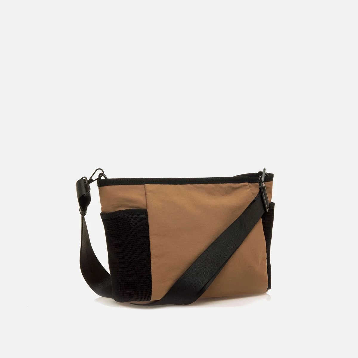 Bolso bandolera color arena con detalles en negro y bolsillos de rejilla laterales, incluye asa bandolera MUSTANG NOCA