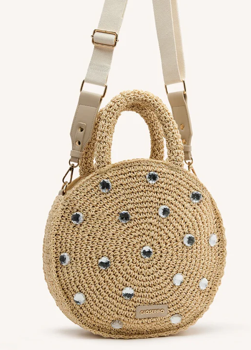 Bolso tipo bandolera de rafia color natural con adorno de joyas GIOSEPPO 75503