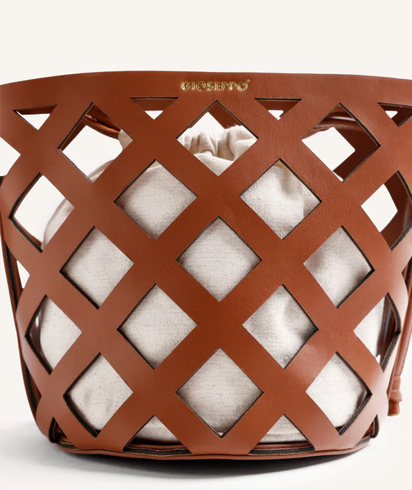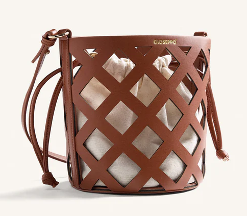 Bolso tipo bucket color cuero con diseño calado y asa larga GIOSEPPO 78266