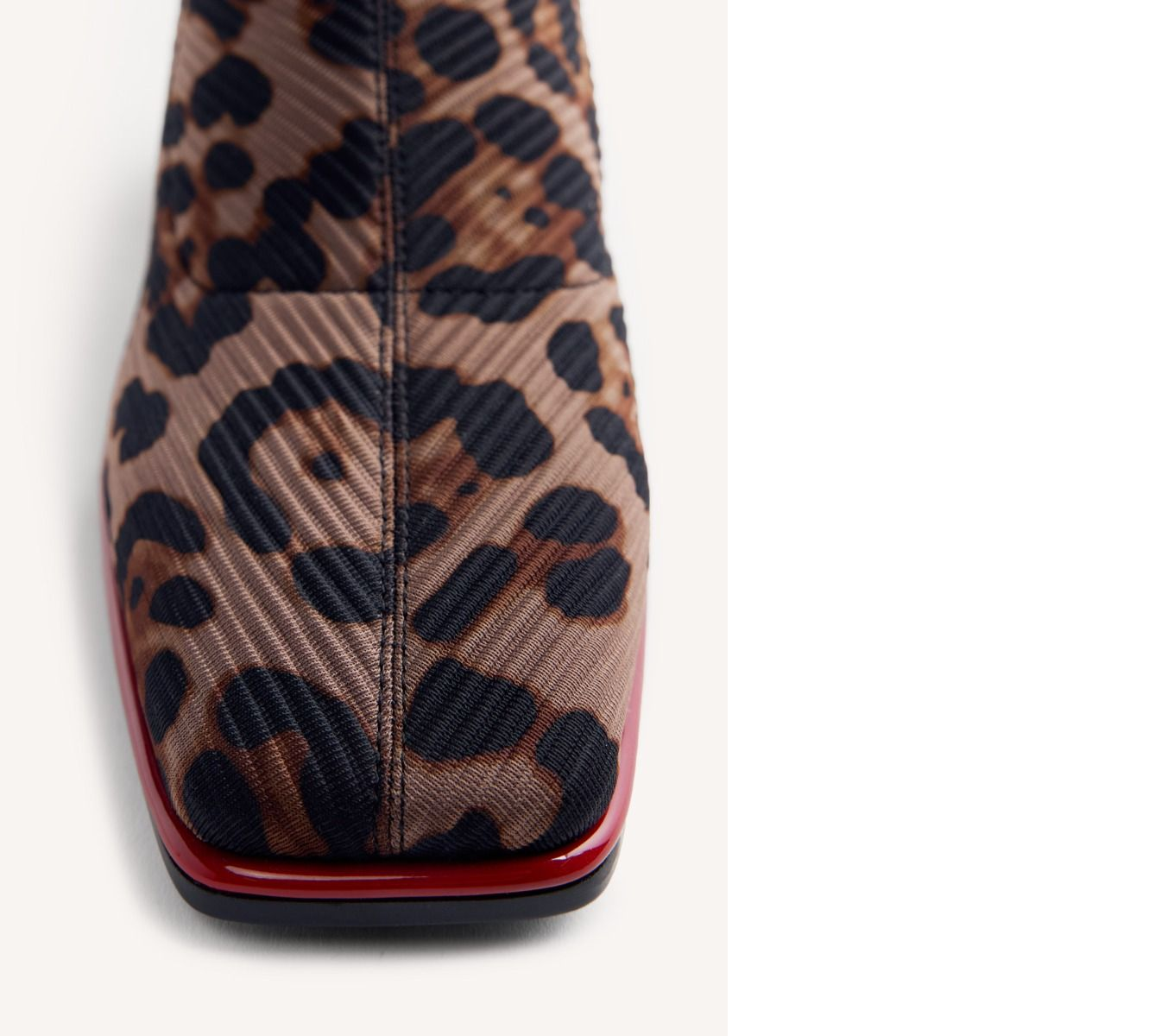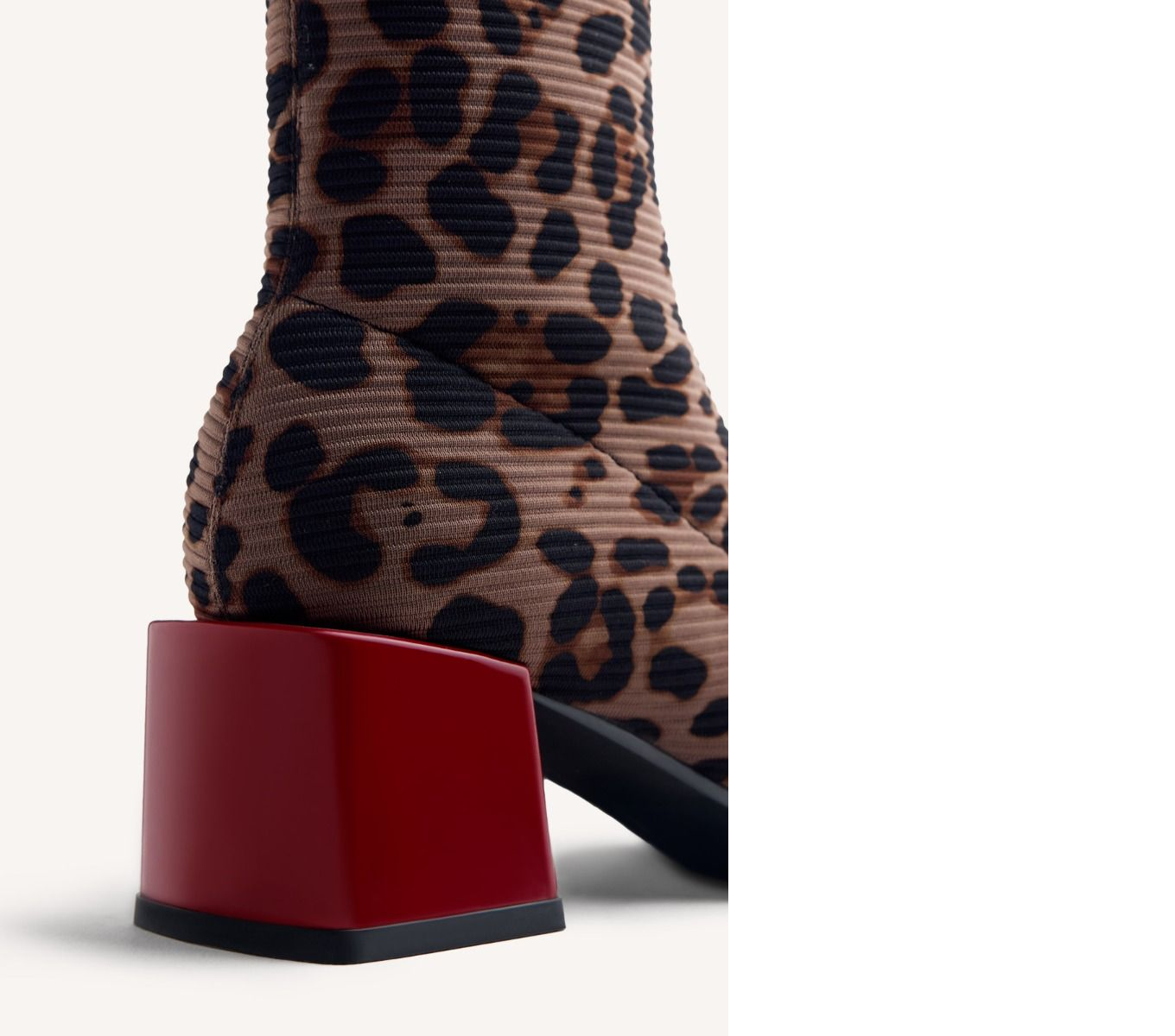 Botín con estampado animal y caña tipo calcetín, tacón acharolado tipo bloque y cerco en contraste GIOSEPPO 76713