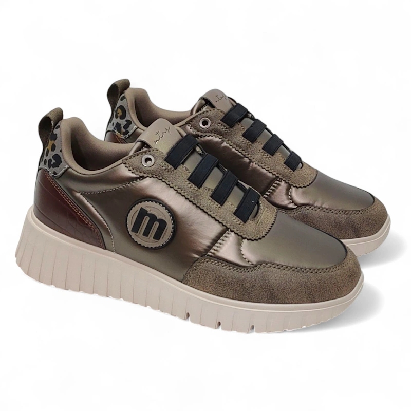 Zapatilla color moka que destaca por su combinación de diferentes texturas, con trasera estampada y cierre de cordones elásticos MARIAMARE 60886