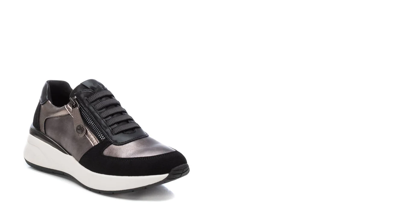 Zapatilla color negro con detalles metalizados y cierre cremallera lateral y cordones elásticos XTI 143358