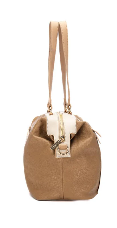 Bolso color camel combinado con beige de serraje con asa para el hombro y asa opcional para bandolera CARMELA 186199