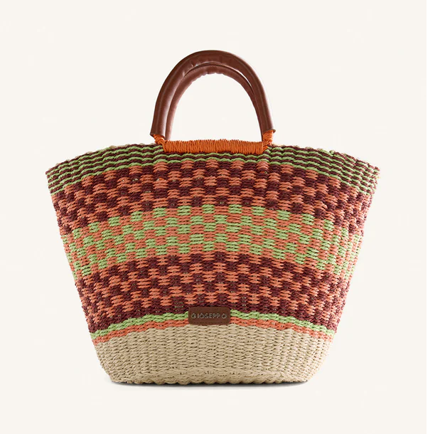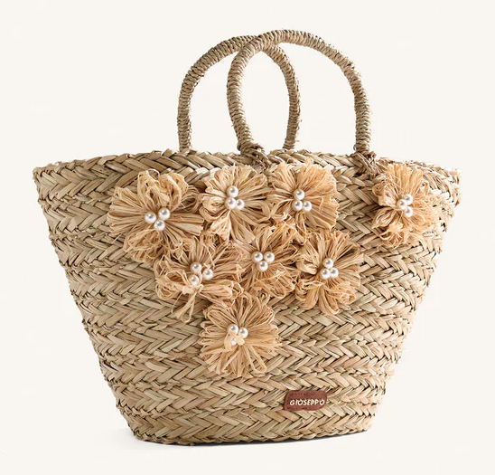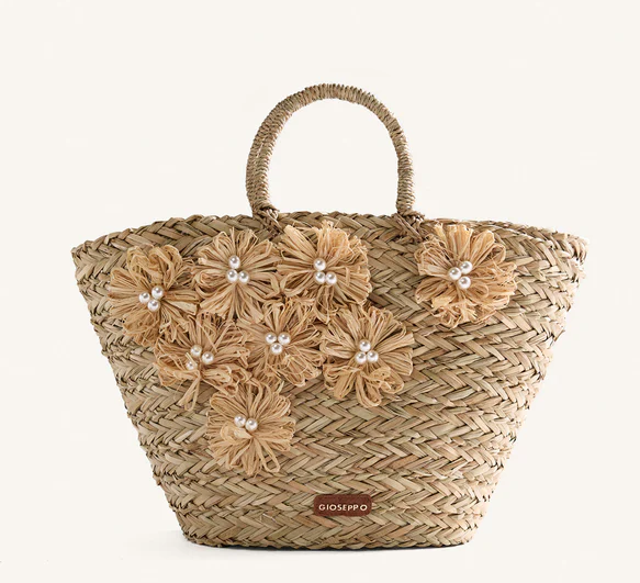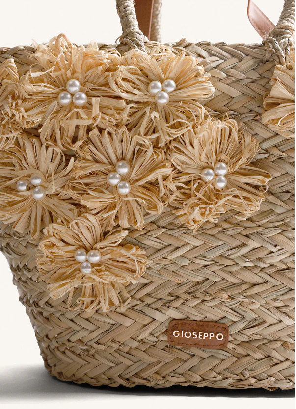 Bolso tipo capazo efecto rafia color natural y con detalle de flores GIOSEPPO 78146