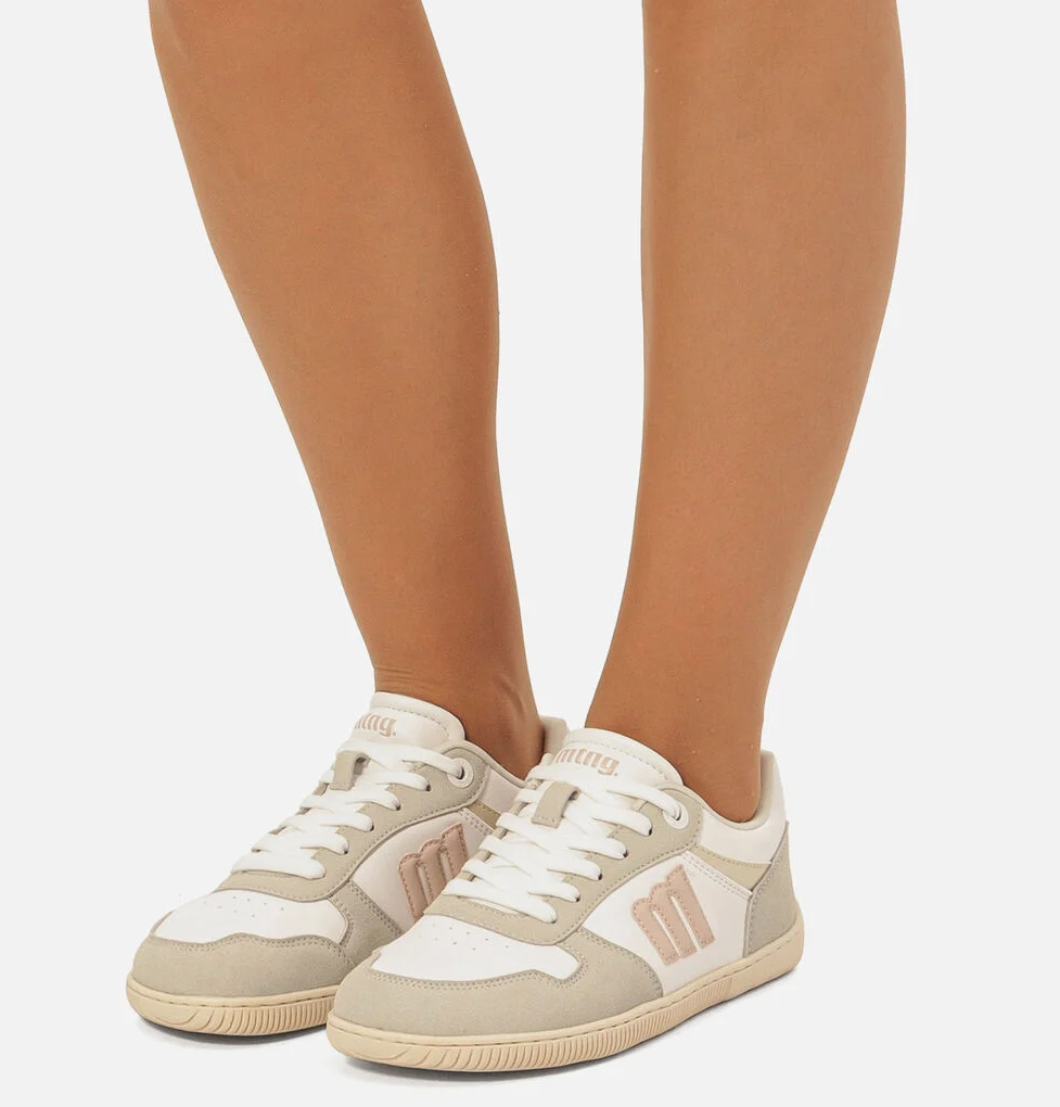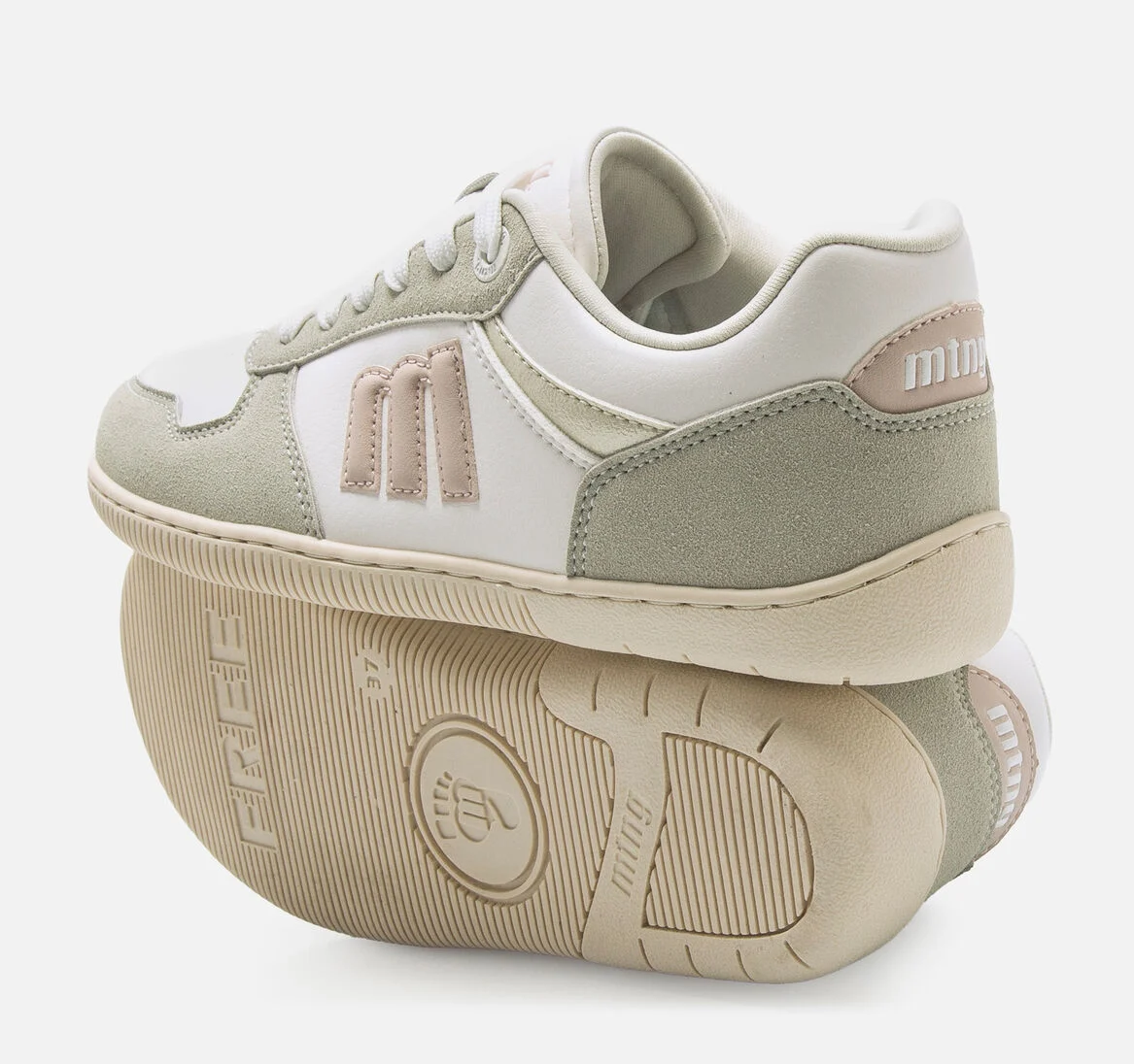 Zapatilla color blanco con detalles en beige y verde claro y suela color crema MUSTANG 60840