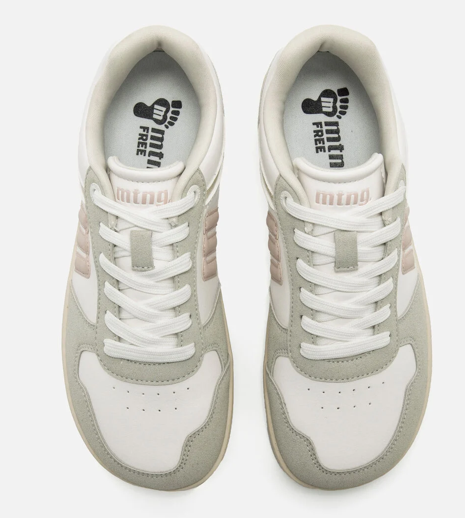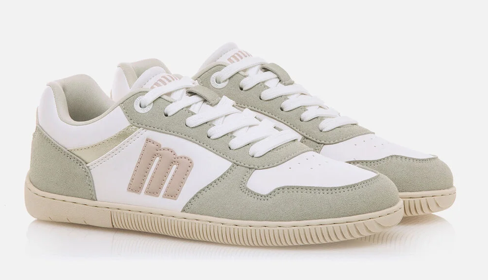 Zapatillas de color blanco para mujer Mustang modelo Free Aria de estilo casual con detalles en tonos beige y verde claro, que aportan un toque fresco y actual. Su suela de color crema proporciona un contraste suave, ideal para looks informales. Diseñadas y desarrolladas especialmente en colaboración con el Dr. Juanjo López, traumatólogo deportivo, para respetar el desarrollo natural del pie. Se trata de un calzado minimalista que gracias a su puntera ancha, suela totalmente plana (cero drop) y flexibilidad, mejora la anatomía del pie y favorece una mejor posición del mismo. Se vende con una plantilla de transición para hacer el cambio de calzado convencional a minimalista de manera progresiva. Con certificado VEGANO sellado por INESCOP, el cual garantiza que la naturaleza química principal del material no se corresponde con fibras de origen animal.