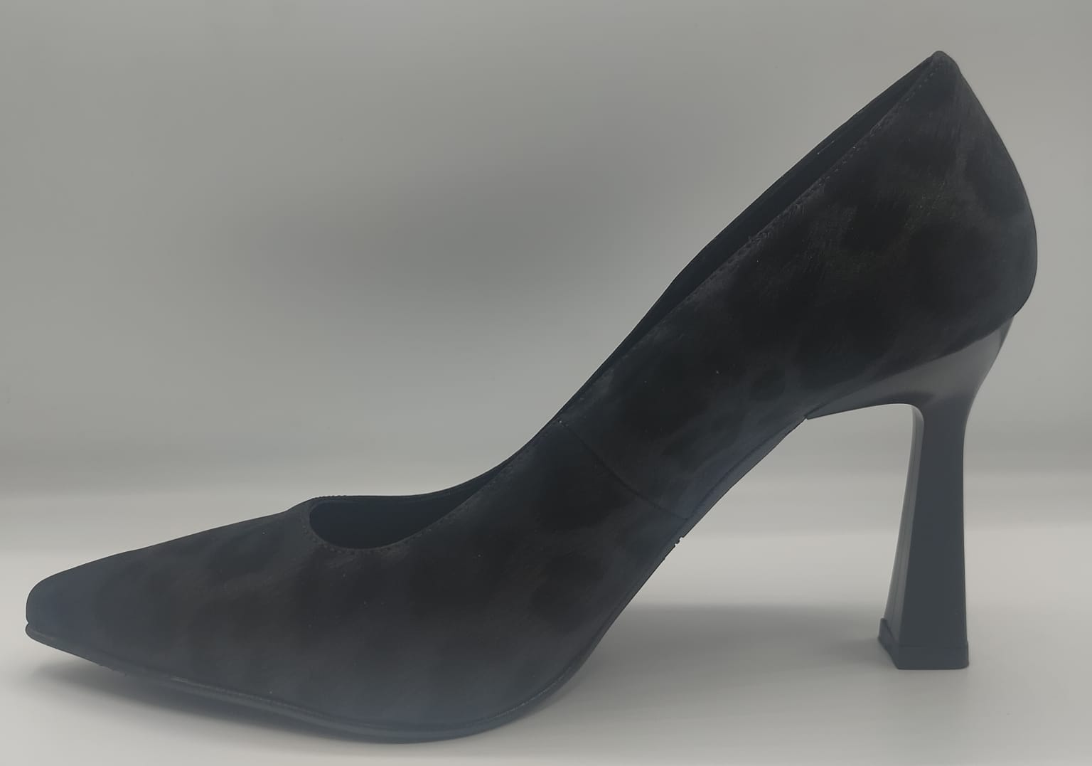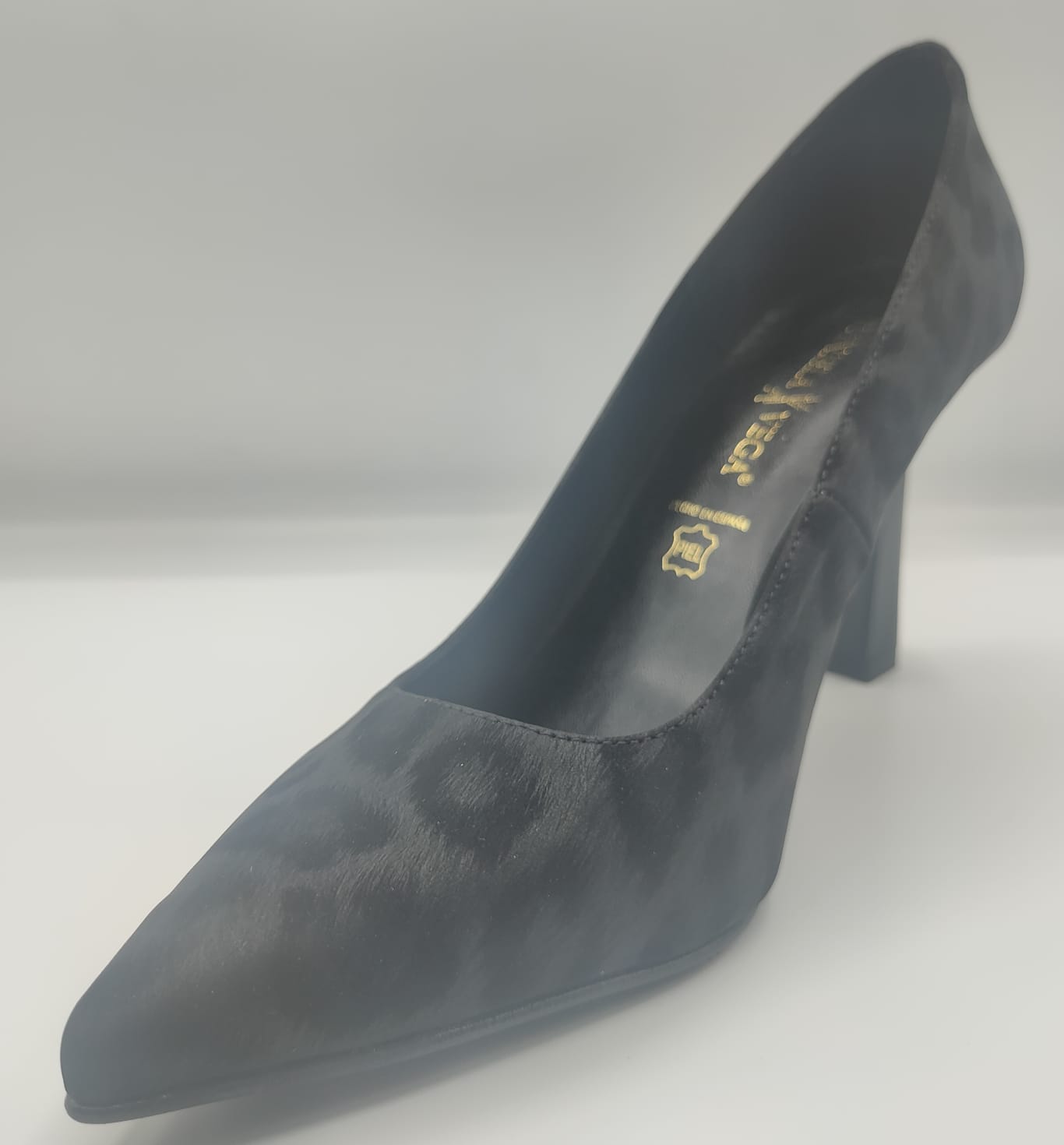 Salón negro con efecto pelo y manchas al tono de animal print, tacón alto DANIELA VEGA 2211