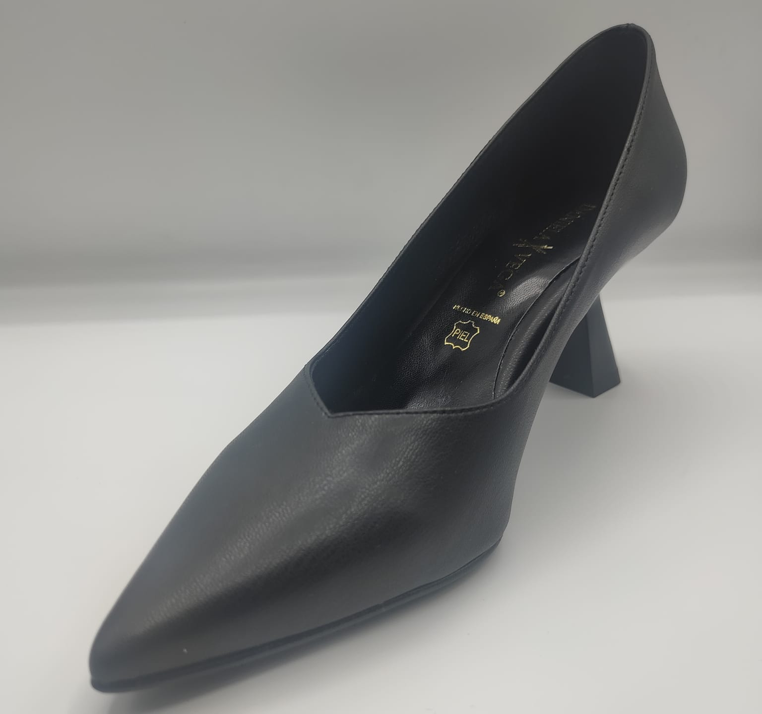 Salón piel color negro con un diseño muy bonito de tacón y estable, punta fina DANIELA VEGA 2333