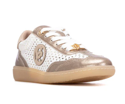 Zapatilla blanca de piel con diseño calado decorativo y detalles metalizados CARMELA 163120